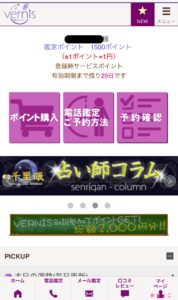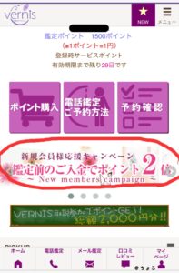 登録して会員ページにログインすると、初回登録鑑定ポイントが1,500円分付いています。